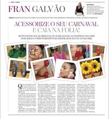 Muito filtro solar, hidratação, maquiagem e acessórios. Para mim esse será o combo perfeito para desfilar com muito estilo nos bloquinhos, festas, escola de samba e qualquer oportunidade nestes dias que nos assumimos foliões.