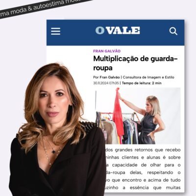 Coluna publicada Jornal O Vale em 23 de novembro 2024 https://sampi.net.br/ovale/noticias/2870503/fran-galvao/2024/11/multiplicacao-de-guardaroupa Multiplicação de guarda-roupa Um dos grandes retornos que recebo de minhas clientes e alunas é sobre minha capacidade de olhar para o guarda-roupa delas, respeitando o acervo que encontro e acima de tudo traduzinho a essência que muitas vezes elas deixaram de lado. […]