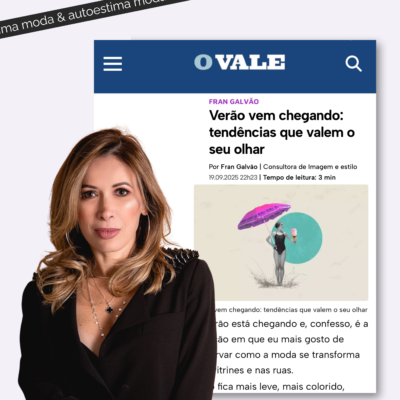 Leia maisColuna publicada Jornal O Vale em 20 de setembro 2025 Leia a coluna completa Verão vem chegando: tendências que valem o seu olhar O verão está chegando e, confesso, é a estação em que eu mais gosto de observar como a moda se transforma nas vitrines e nas ruas. Tudo fica mais leve, mais colorido, […]