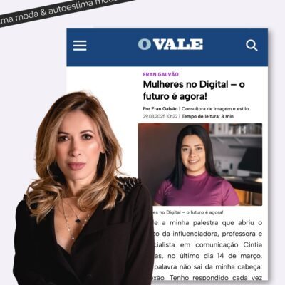Leia maisColuna publicada Jornal O Vale em 29 de março 2025 Leia a coluna completa Mulheres no Digital – o futuro é agora! Desde a minha palestra que abriu o evento da influenciadora, professora e especialista em comunicação Cintia Chagas, no último dia 14 de março, uma palavra não sai da minha cabeça: conexão. Tenho […]